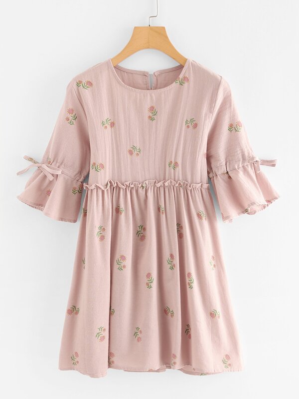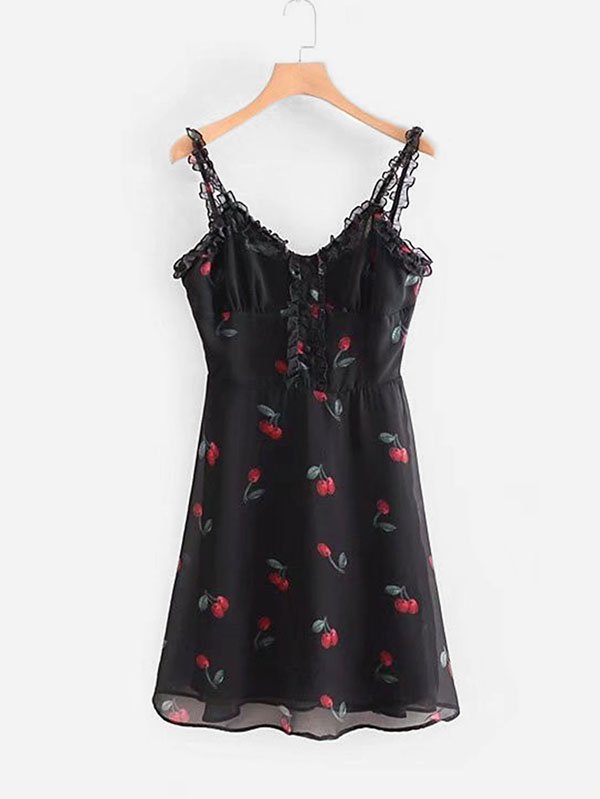 Frill Trim Floral Print Babydoll Dress | Frill Trim Cherry Chiffon Dress | Frill Trim Lace Up Gingham Dress